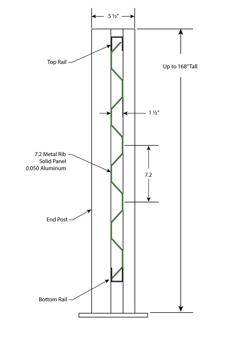 It depends on which infill material you chose. Our Metal Series can span as wide as 6′ between posts. Woodgrain textured PVC infill is available up to 8’ wide in increments of 6”. Please contact us directly at 1-877-727-3367 with any unique requests and our design staff can quickly evaluate to provide answers or suggestions; usually within 48 hours.