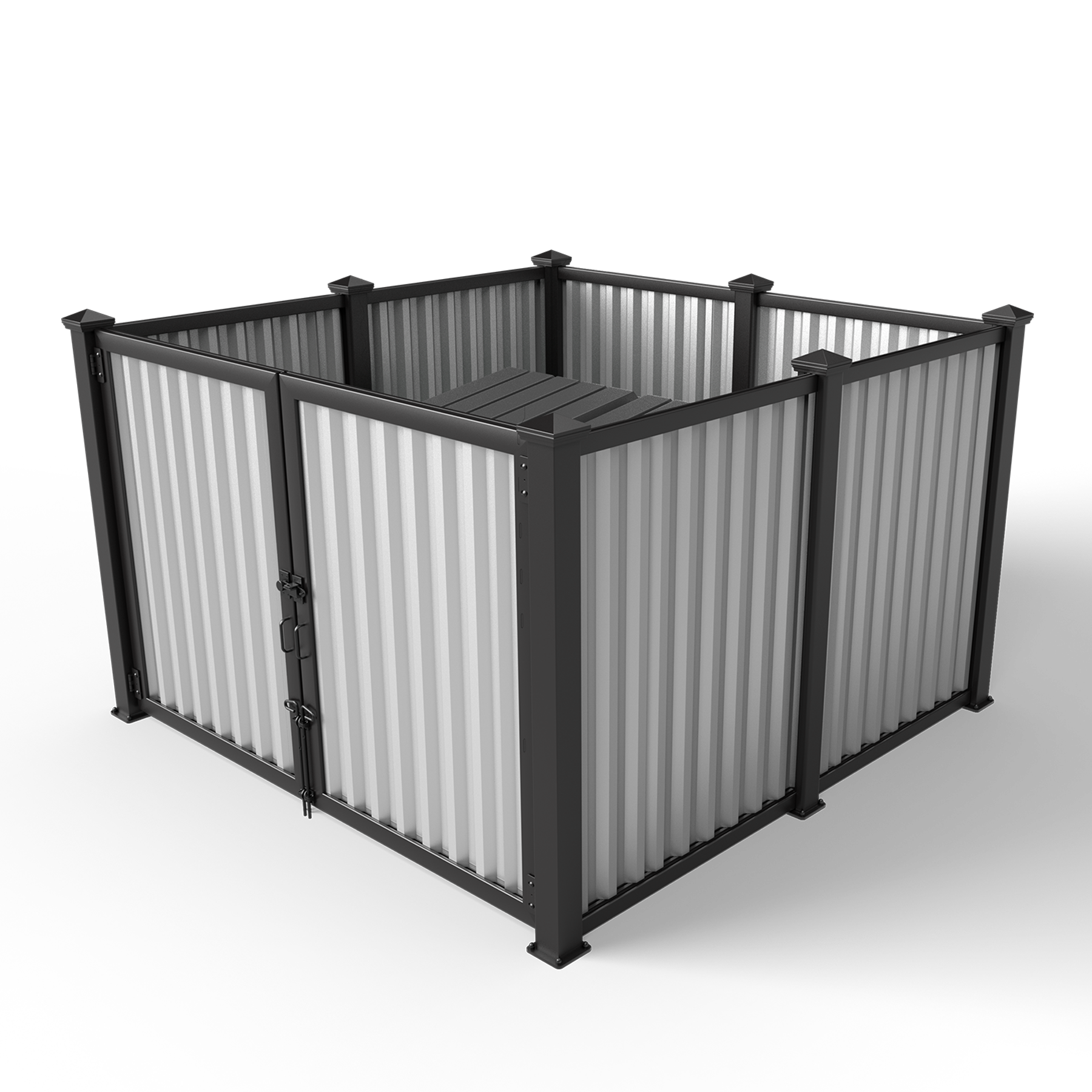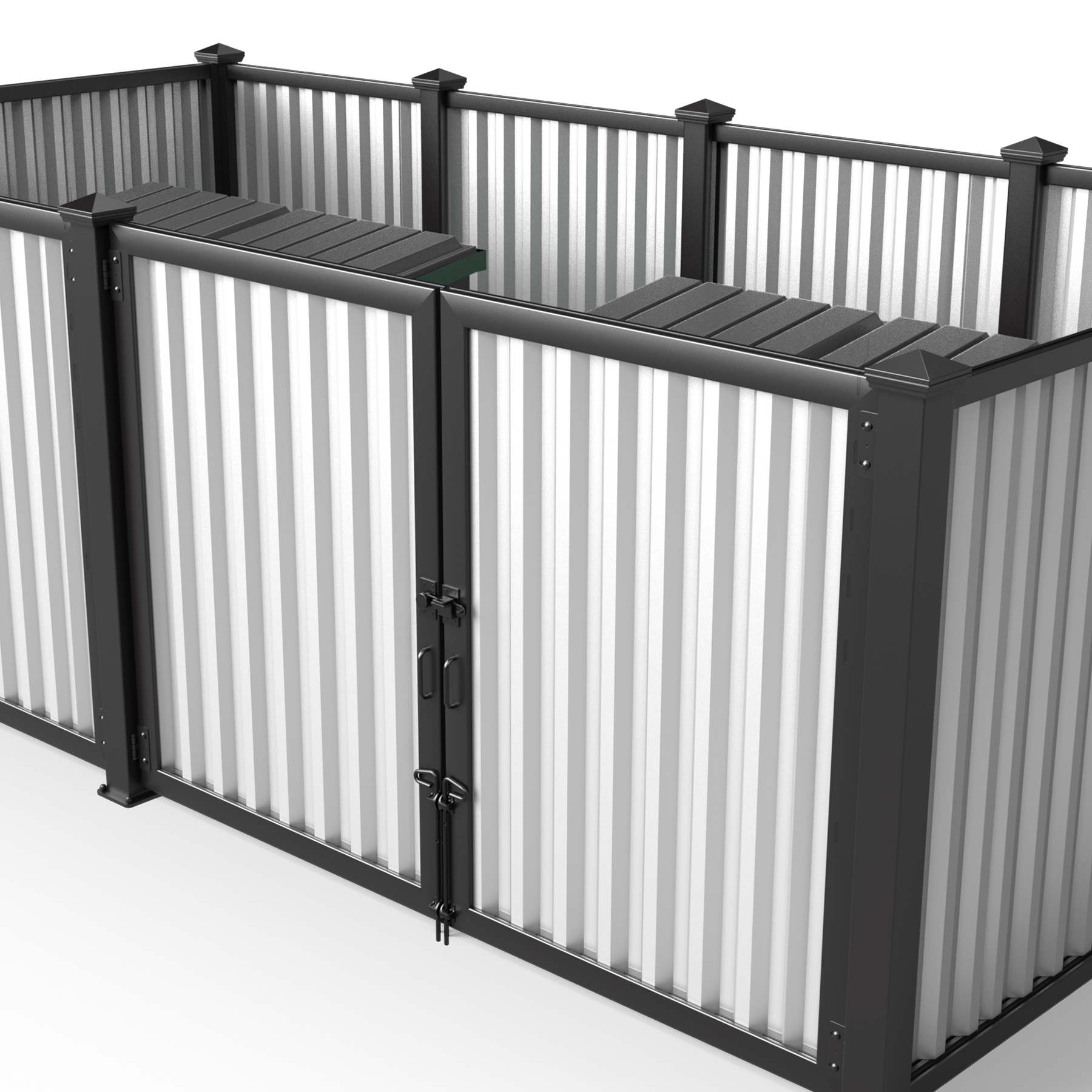 Metal Infill Series Opt for a modern industrial look with our selection of metal infills. Create a cohesive and stylish look by matching our metal paneled dumpster surrounds with the rest of your property. We also offer custom screen walls and gates in the same material, making it easy to coordinate your other screening efforts including HVAC units, pool pumps, maintenance yards, and service doors.