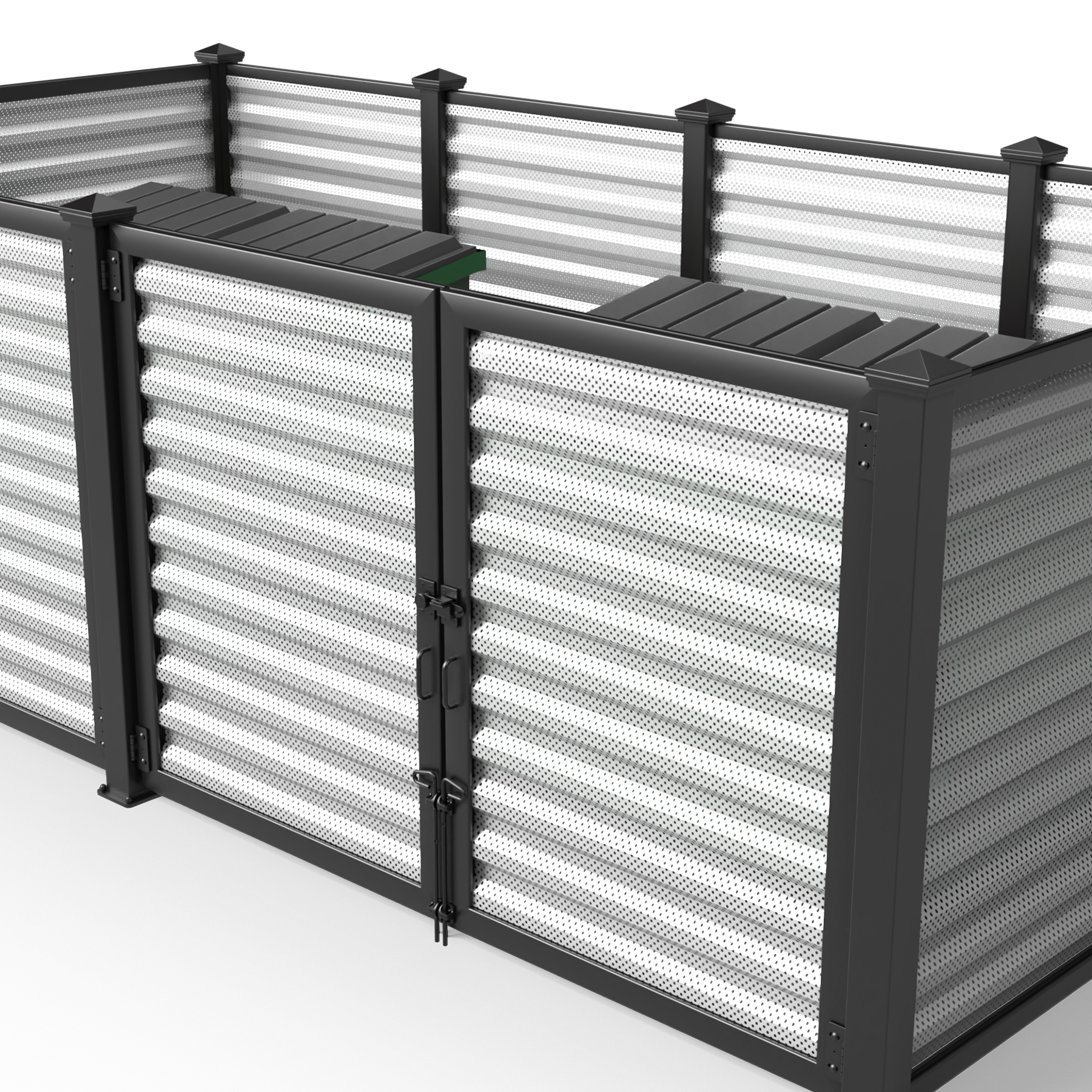 Metal Infill Series Opt for a modern industrial look with our selection of metal infills. Create a cohesive and stylish look by matching our metal paneled dumpster surrounds with the rest of your property. We also offer custom screen walls and gates in the same material, making it easy to coordinate your other screening efforts including HVAC units, pool pumps, maintenance yards, and service doors.