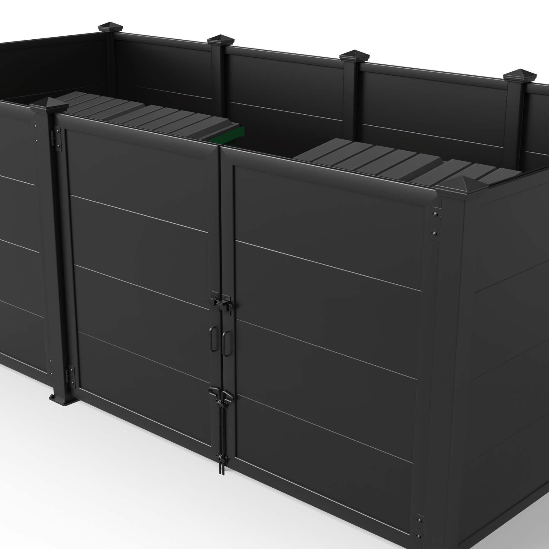 Metal Infill Series Opt for a modern industrial look with our selection of metal infills. Create a cohesive and stylish look by matching our metal paneled dumpster surrounds with the rest of your property. We also offer custom screen walls and gates in the same material, making it easy to coordinate your other screening efforts including HVAC units, pool pumps, maintenance yards, and service doors.