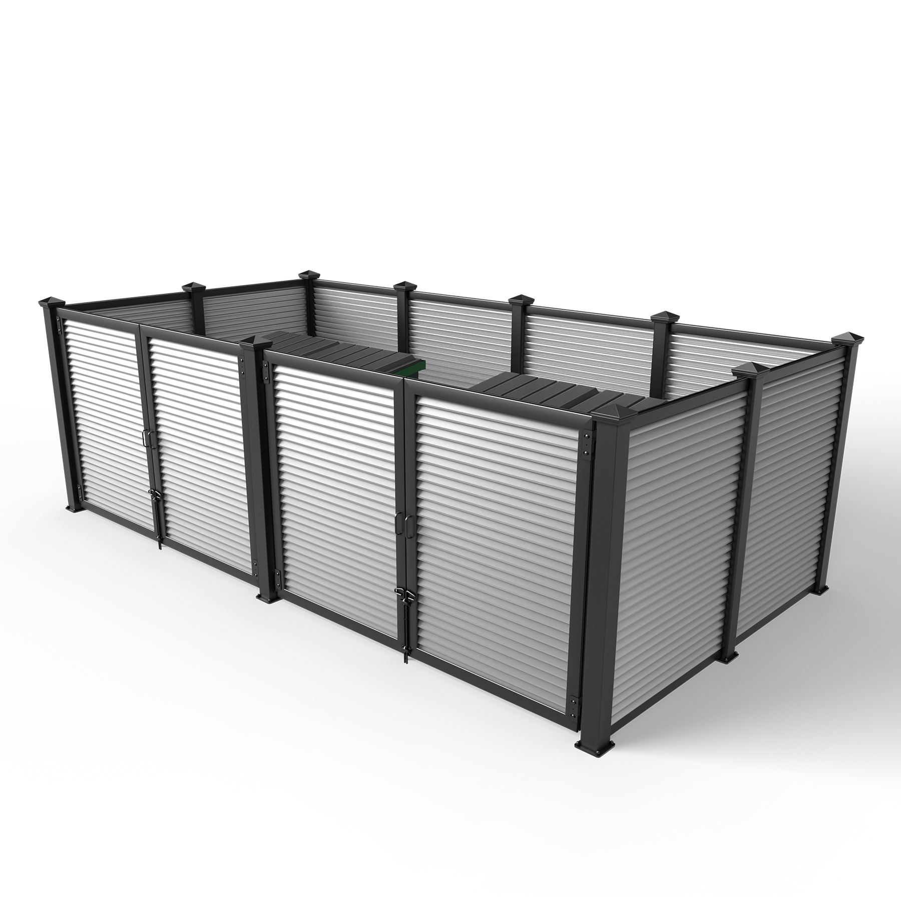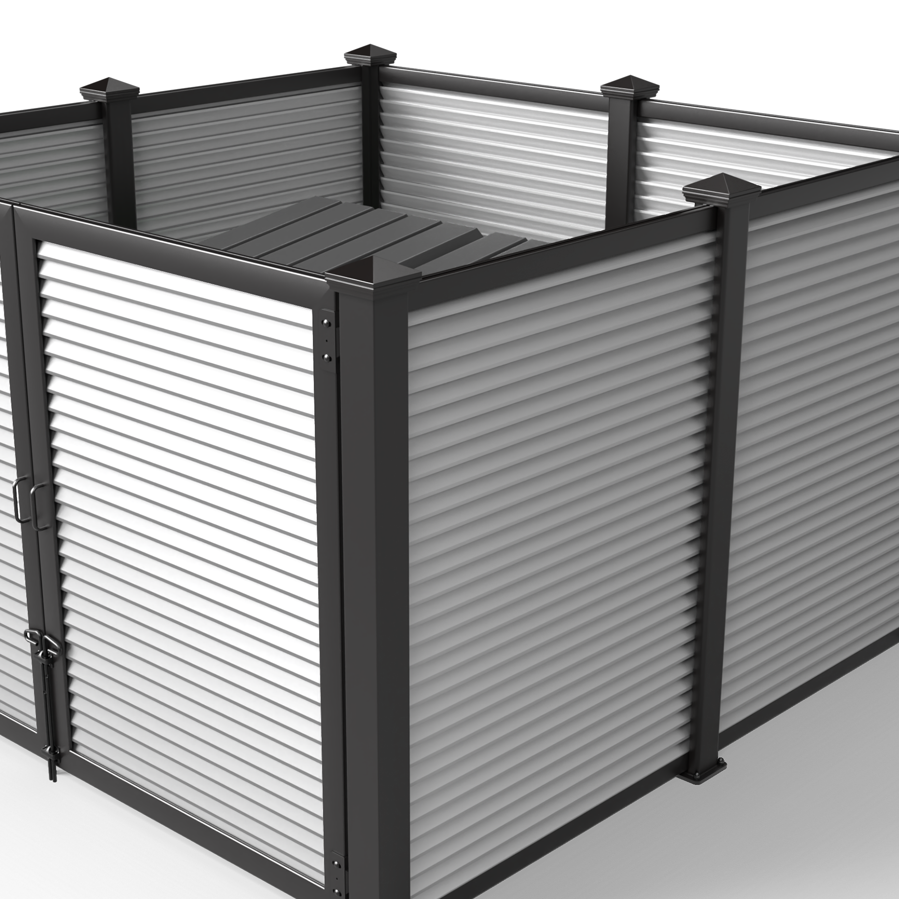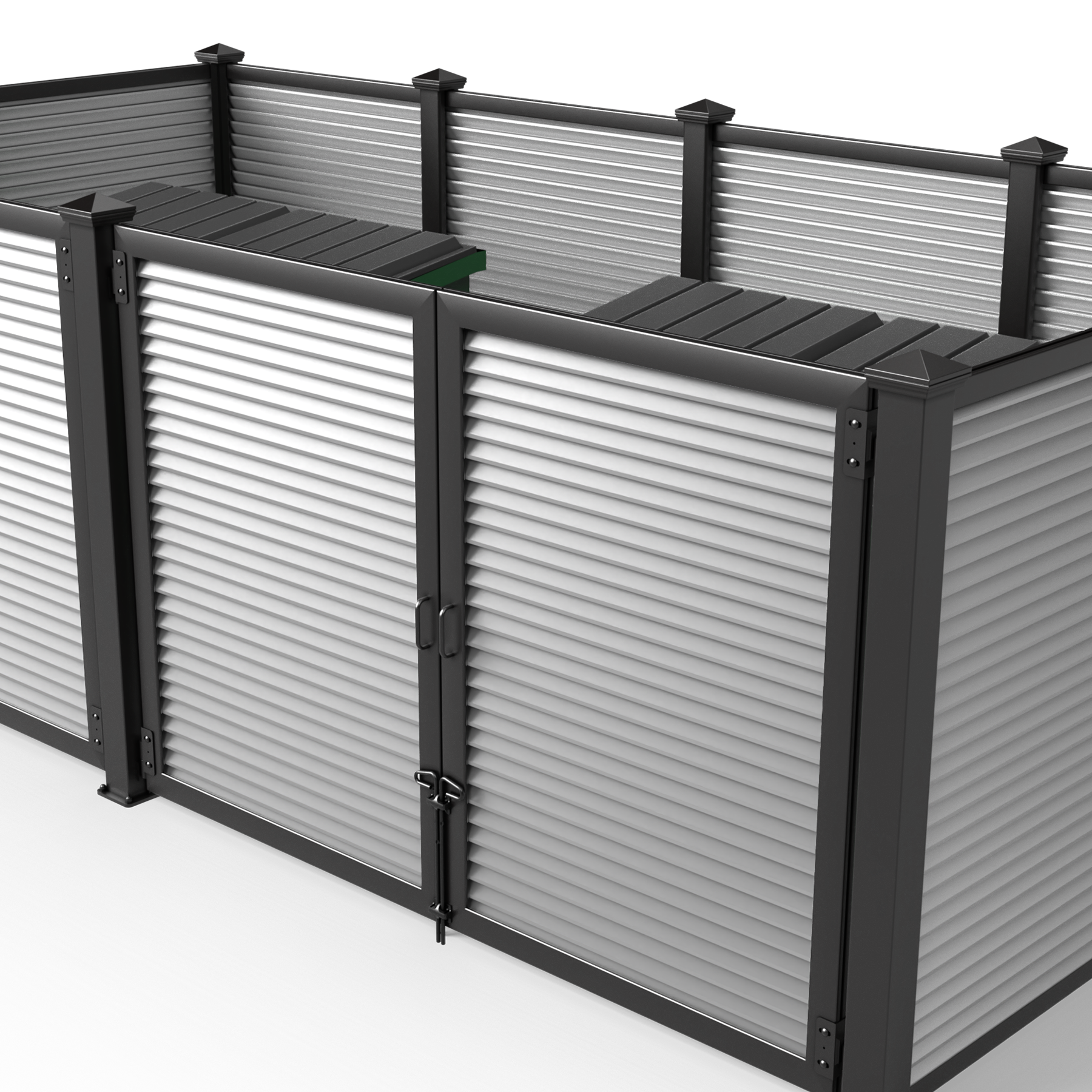 Metal Infill Series Opt for a modern industrial look with our selection of metal infills. Create a cohesive and stylish look by matching our metal paneled dumpster surrounds with the rest of your property. We also offer custom screen walls and gates in the same material, making it easy to coordinate your other screening efforts including HVAC units, pool pumps, maintenance yards, and service doors.
