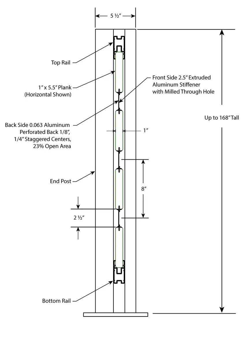 - Metal Material: 2 1/2" Extruded Aluminum Stiffener