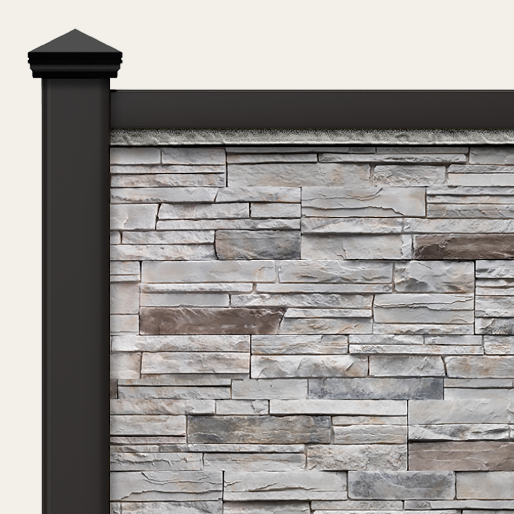 Natural Wood and Stone Infill Series Natural hardwoods and cultured stone offer beauty suited for a traditional, sophisticated look. We source the best grades of hardwood for every project. We’ve also engineered a simple way to add the look of cultured stone to an enclosure or screen wall and can’t wait to show it to you. Select from multiple colors and styles to complement your site.