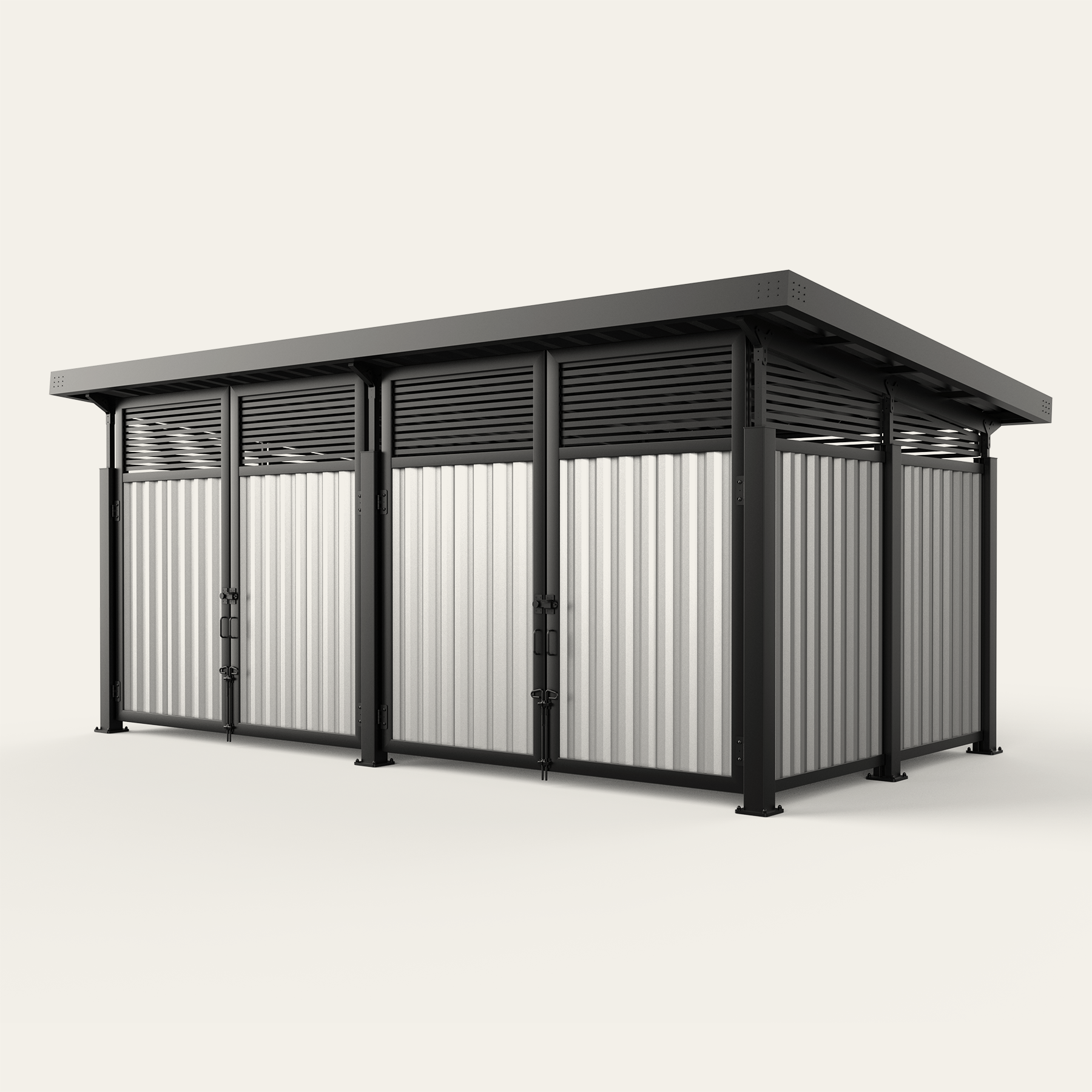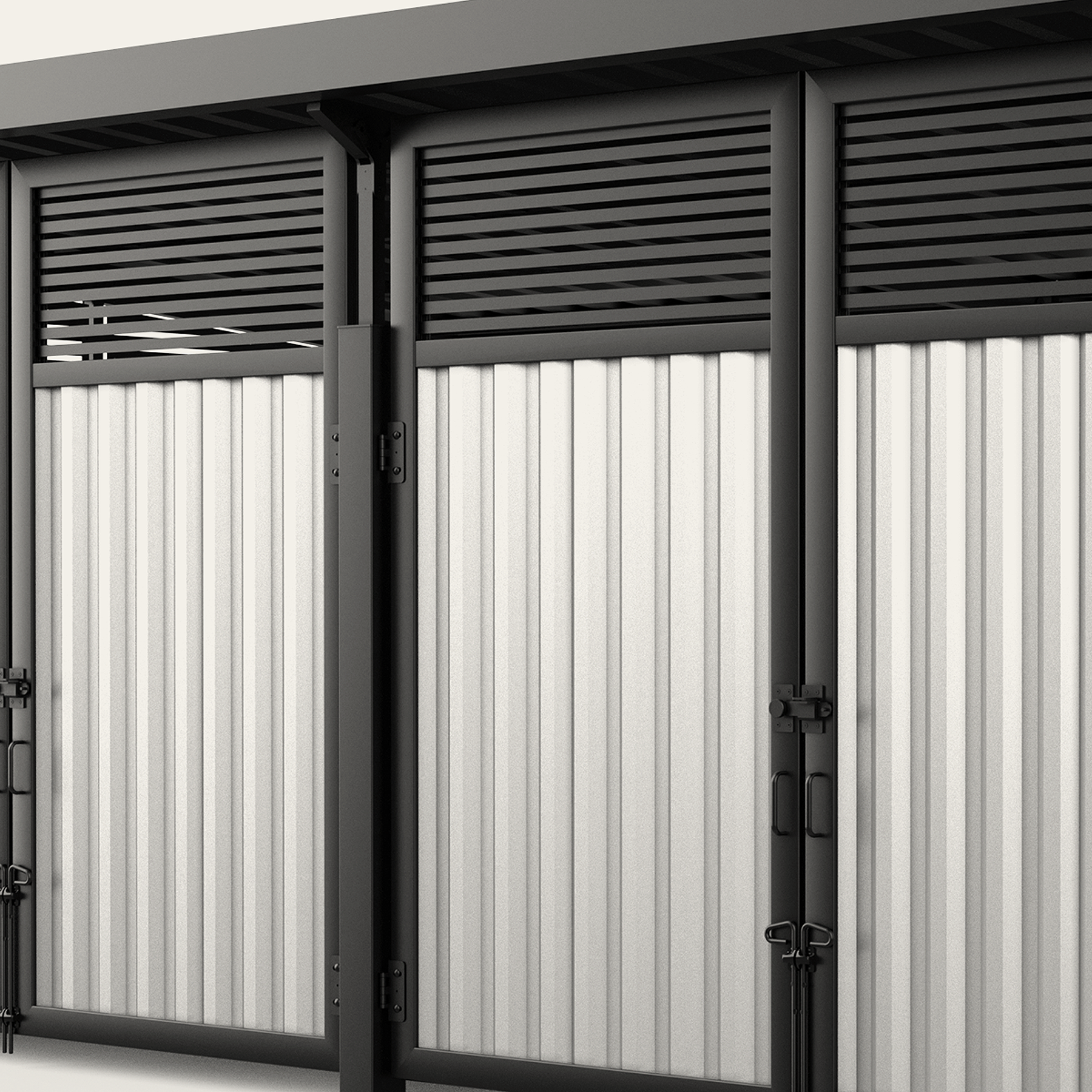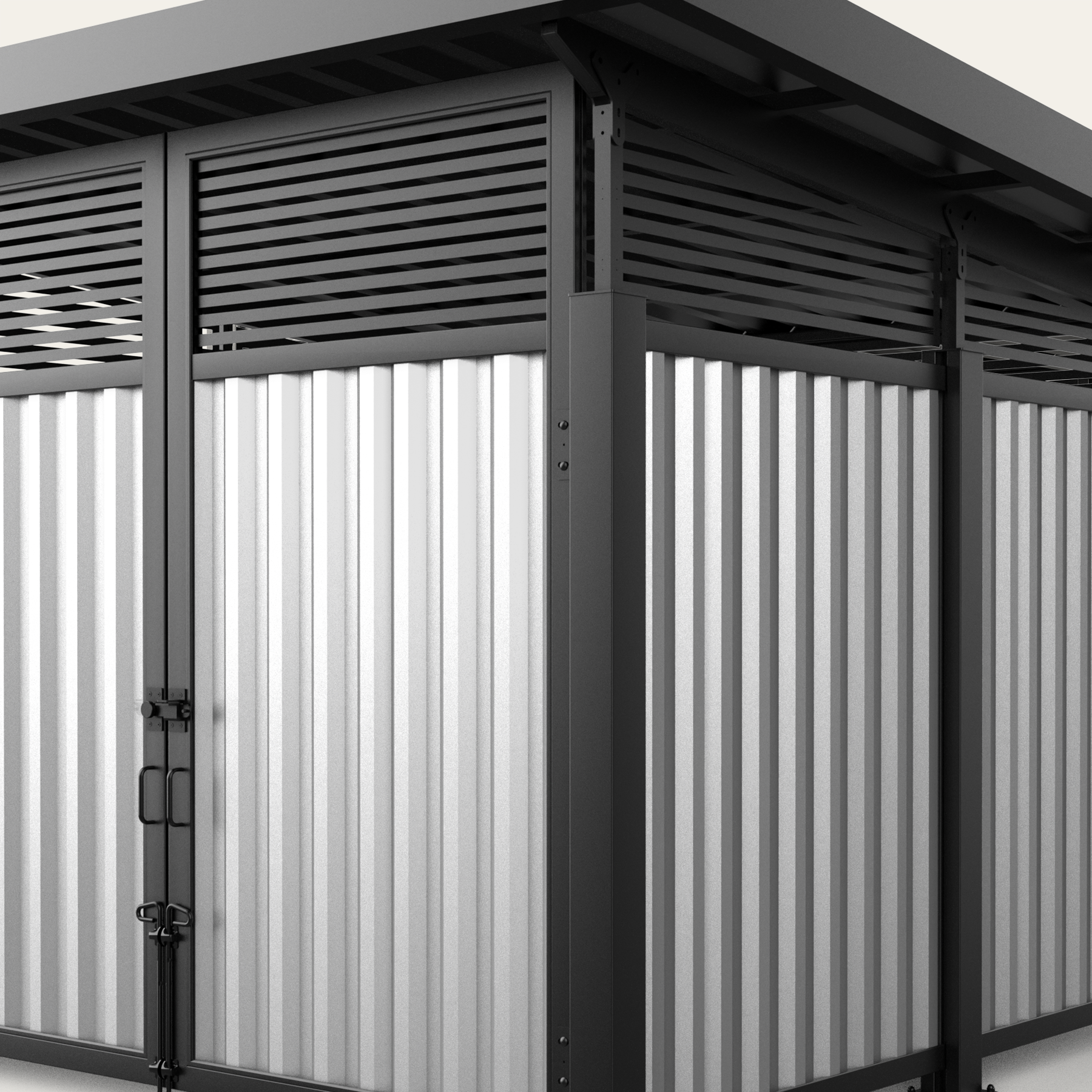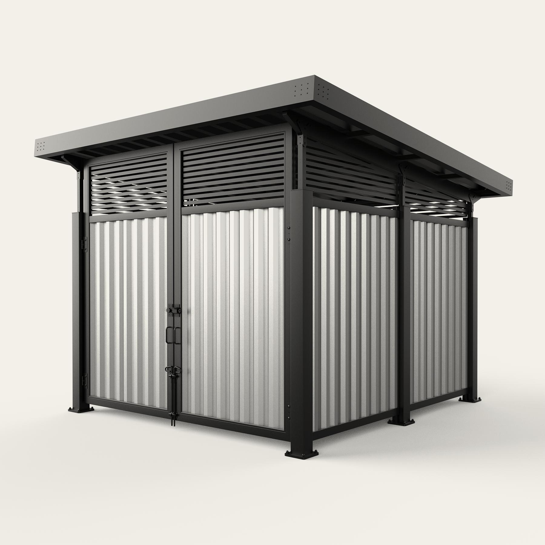 Metal Infill Series Opt for a modern industrial look with our selection of metal infills. Create a cohesive and stylish look by matching our metal paneled dumpster surrounds with the rest of your property. We also offer custom screen walls and gates in the same material, making it easy to coordinate your other screening efforts including HVAC units, pool pumps, maintenance yards, and service doors.