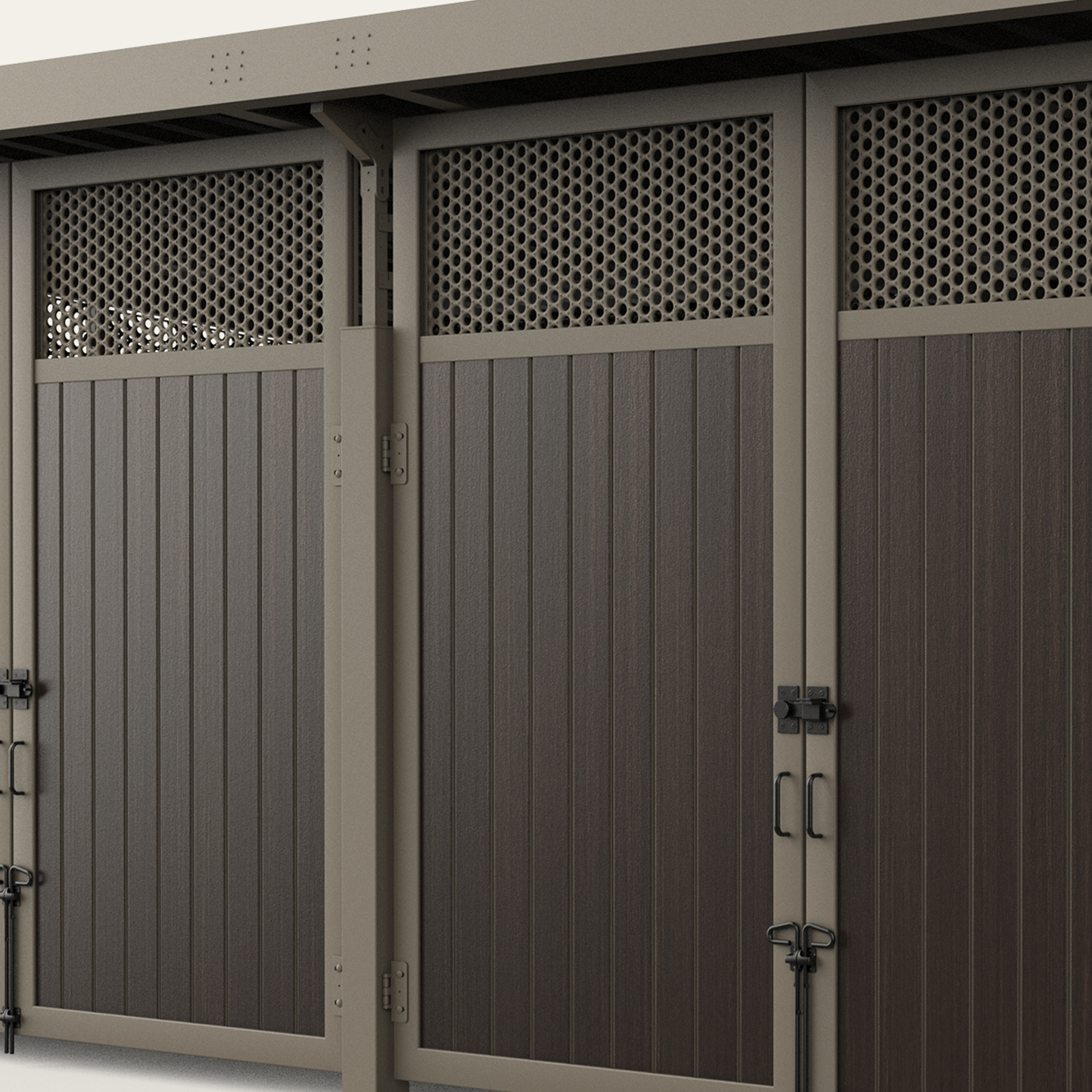- Covrit Model 1111W - Covrit Single open top dumpster enclosure with walk-in RFA