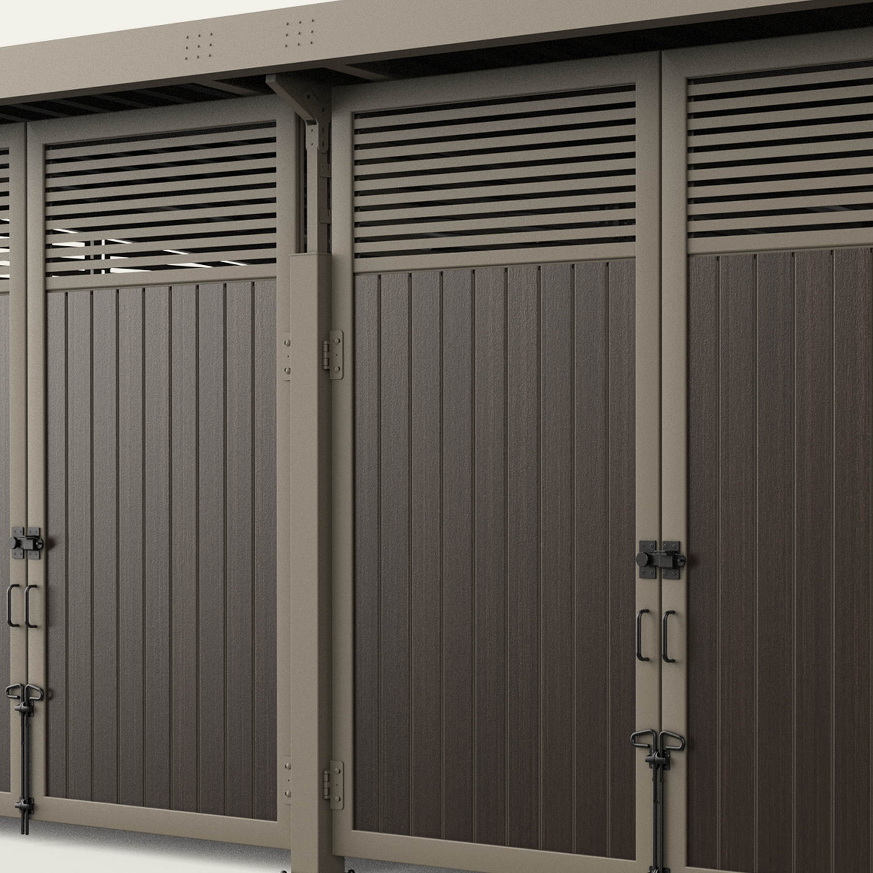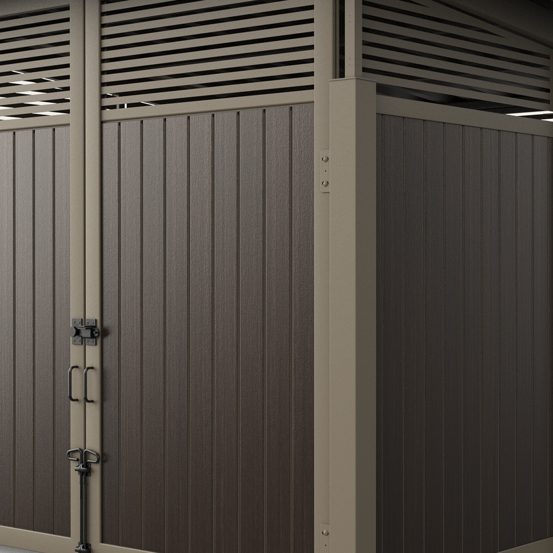 - Covrit Model 1111W - Covrit Single open top dumpster enclosure with walk-in RFA