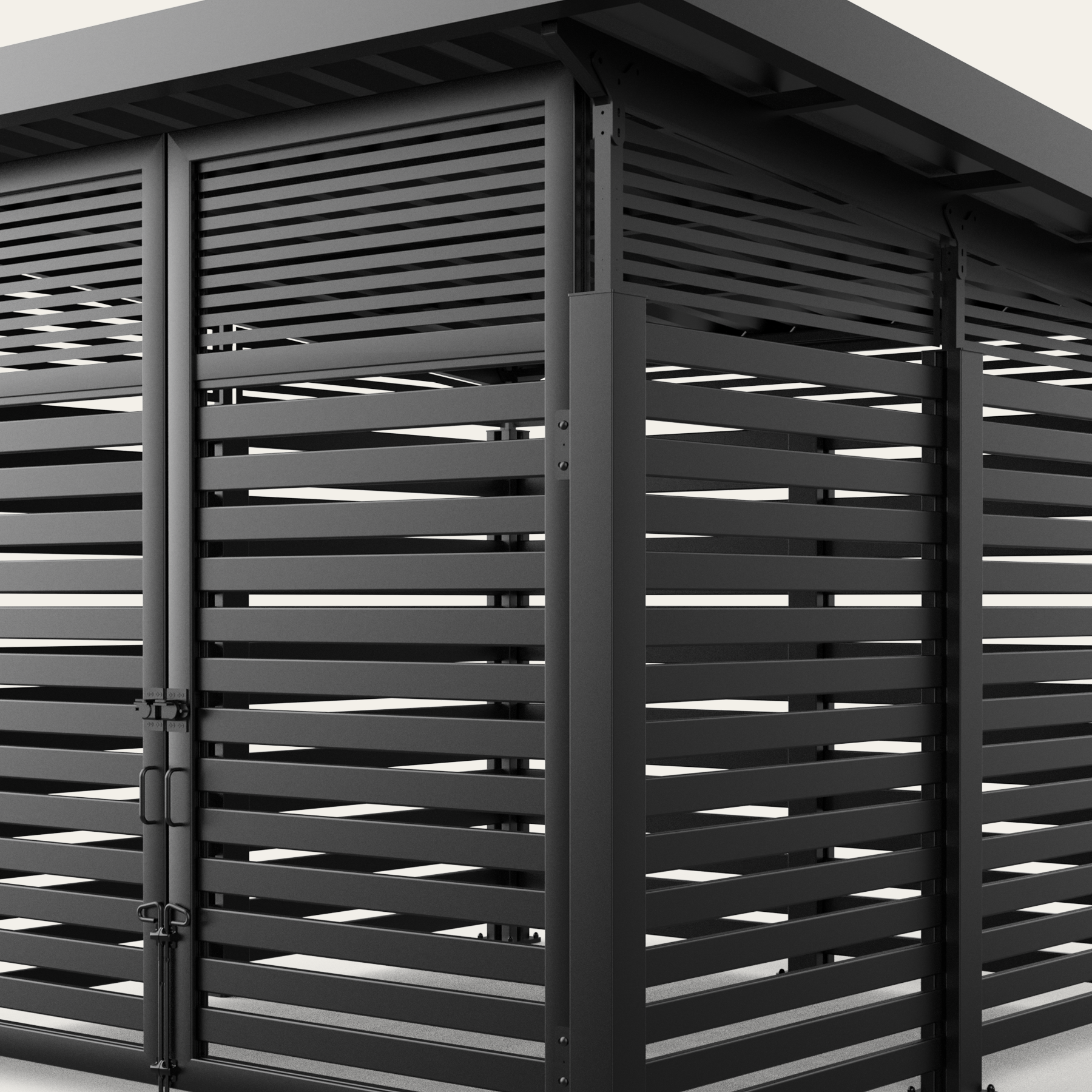 Metal Infill Series Opt for a modern industrial look with our selection of metal infills. Create a cohesive and stylish look by matching our metal paneled dumpster surrounds with the rest of your property. We also offer custom screen walls and gates in the same matMetal Infill Series Opt for a modern industrial look with our selection of metal infills. Create a cohesive and stylish look by matching our metal paneled dumpster surrounds with the rest of your property. We also offer custom screen walls and gates in the same material, making it easy to coordinate your other screening efforts including HVAC units, pool pumps, maintenance yards, and service doors.erial, making it easy to coordinate your other screening efforts including HVAC units, pool pumps, maintenance yards, and service doors.