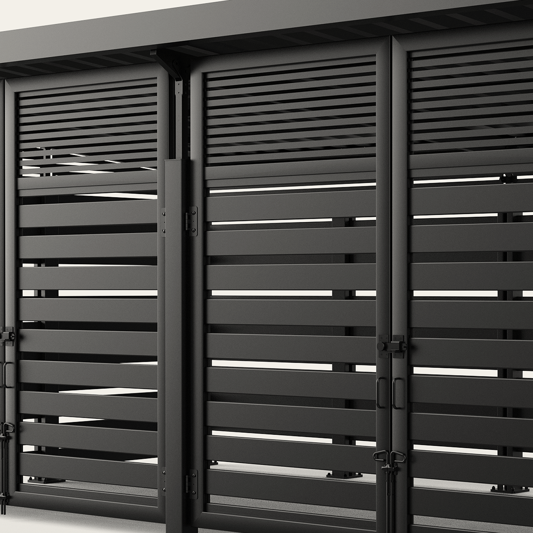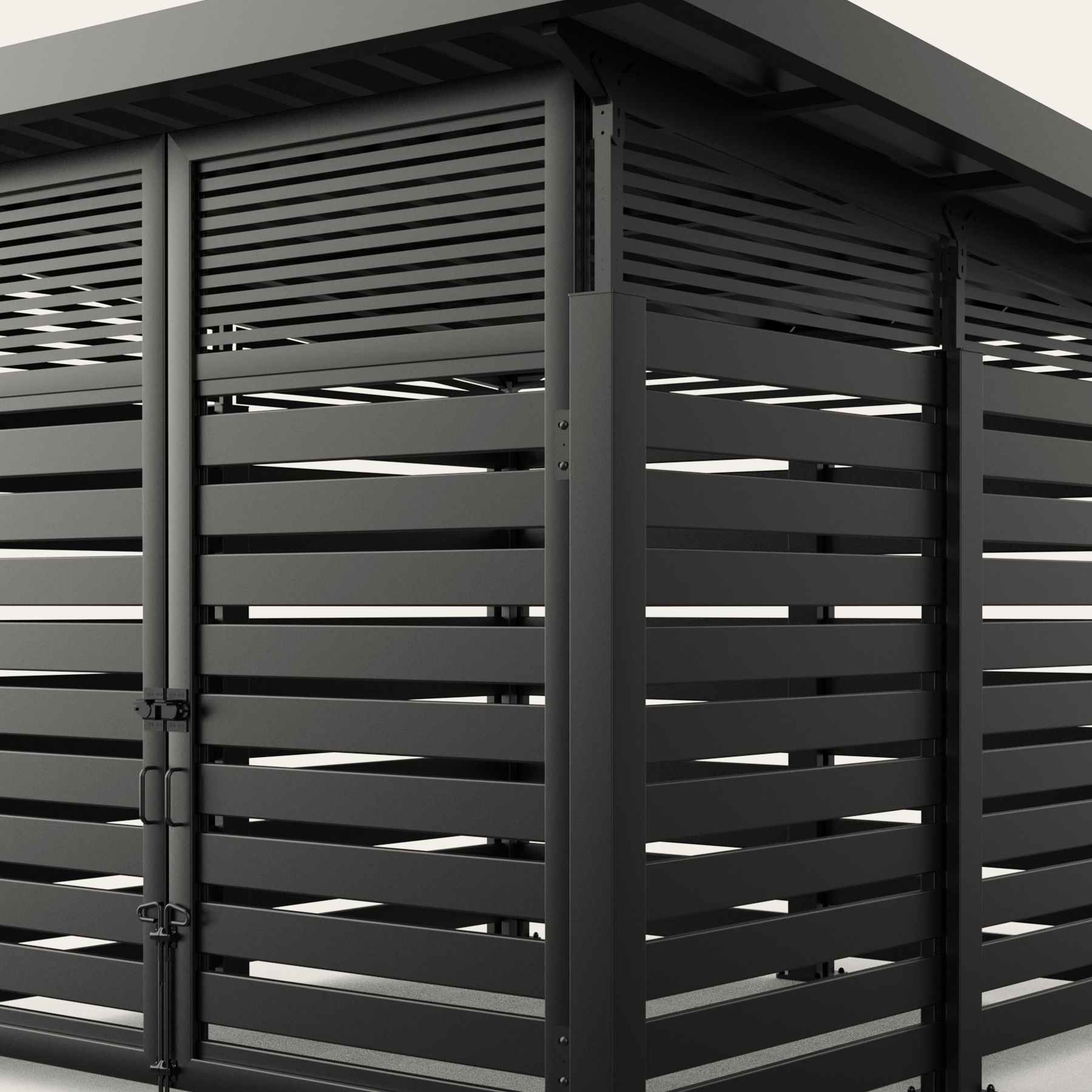 Metal Infill Series Opt for a modern industrial look with our selection of metal infills. Create a cohesive and stylish look by matching our metal paneled dumpster surrounds with the rest of your property. We also offer custom screen walls and gates in the same material, making it easy to coordinate your other screening efforts including HVAC units, pool pumps, maintenance yards, and service doors.