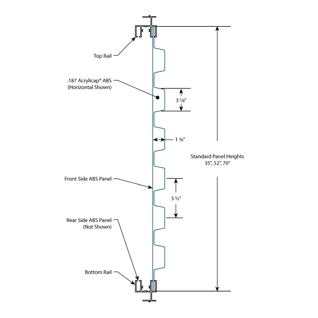 - Aluminum support rails are mechanically riveted to 52-inch and 70-inch panels for added strength.