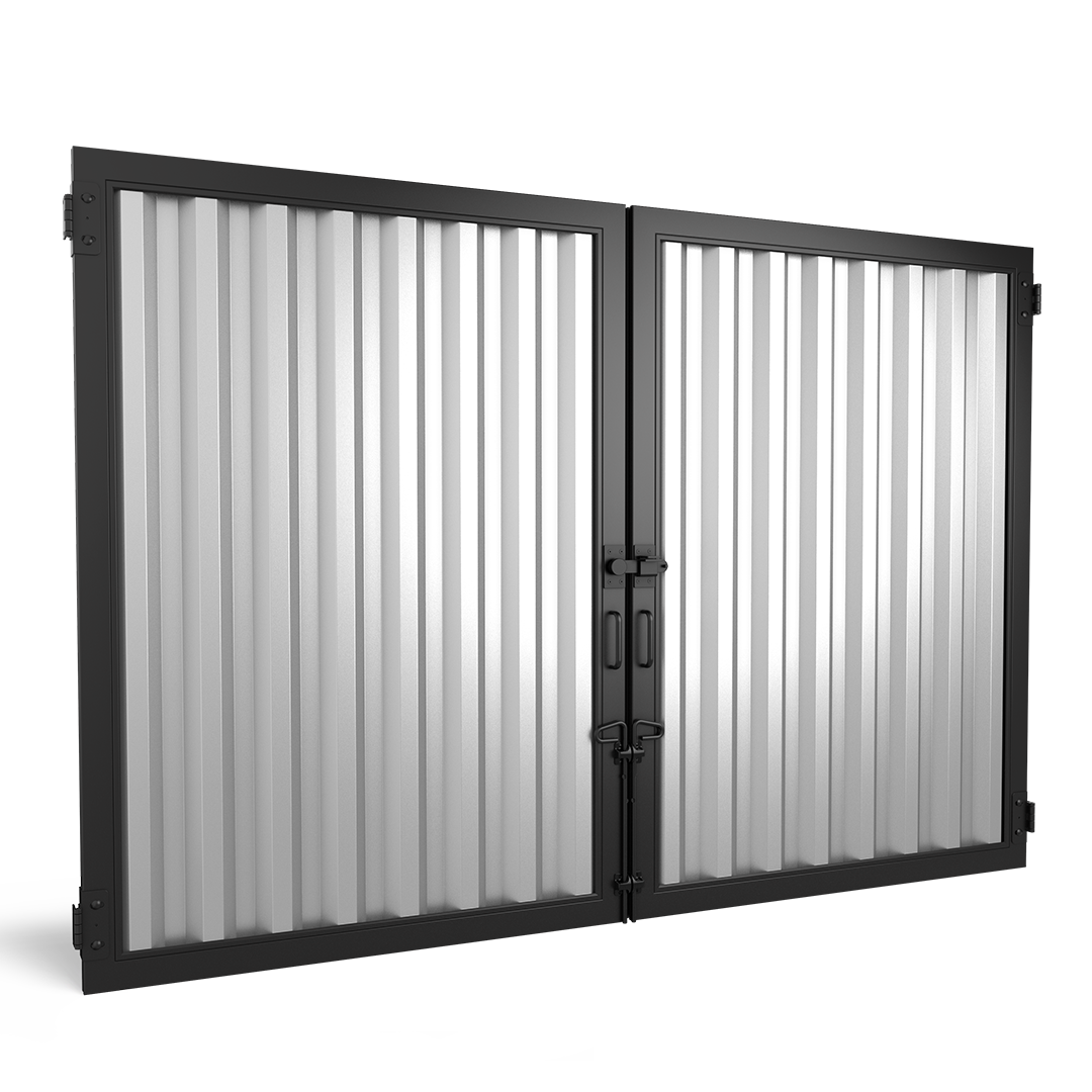 Our unique gate hinge design works well with most existing steel poles for mounting. Simply provide the outside diameter pole dimension (inches), the on-center spacing (inches) between poles, and required door height and our project managers will guide you through the ordering process.