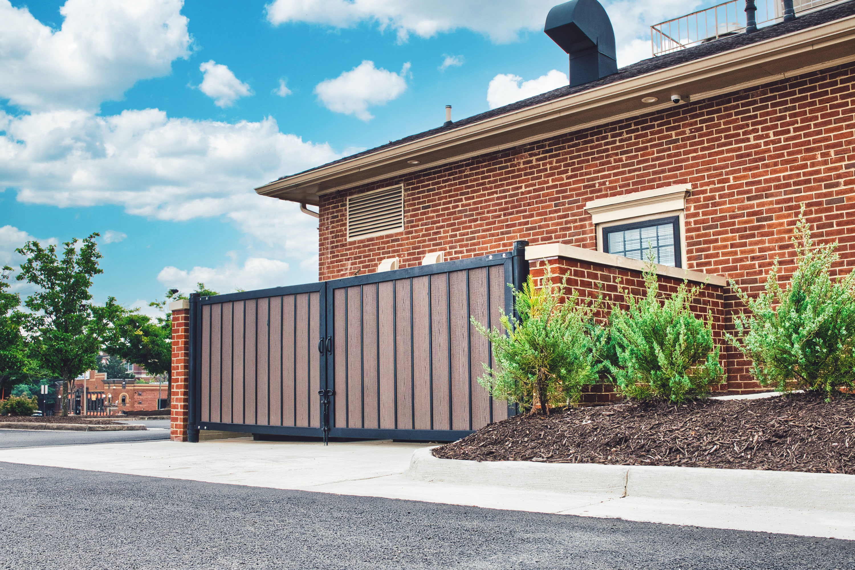 Metal Infill Series Opt for a modern industrial look with our selection of metal infills. Create a cohesive and stylish look by matching our metal paneled dumpster surrounds with the rest of your property. We also offer custom screen walls and gates in the same material, making it easy to coordinate your other screening efforts including HVAC units, pool pumps, maintenance yards, and service doors.